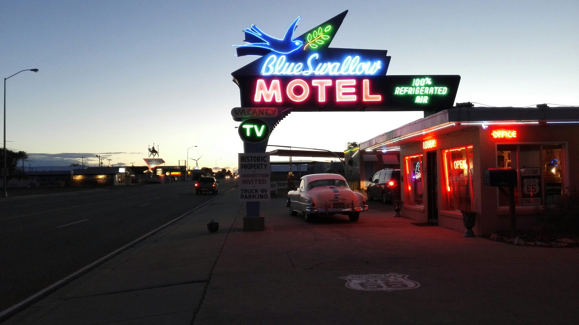 Ho scattato come al solito centinaia di foto al motel, ho come al solito passeggiato lungo la Route 66, ho come al solito atteso che la luce del sole venisse sostituita da quella dei neon.