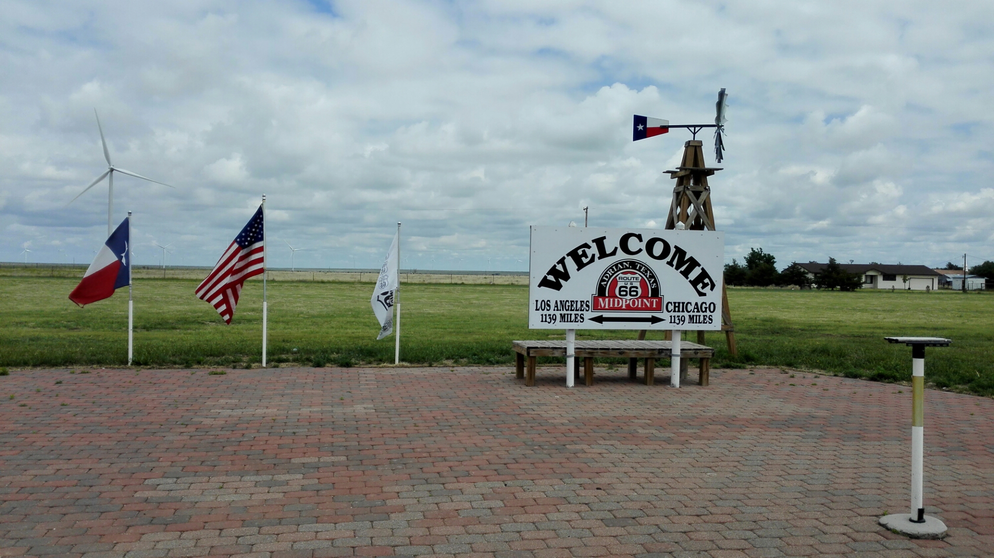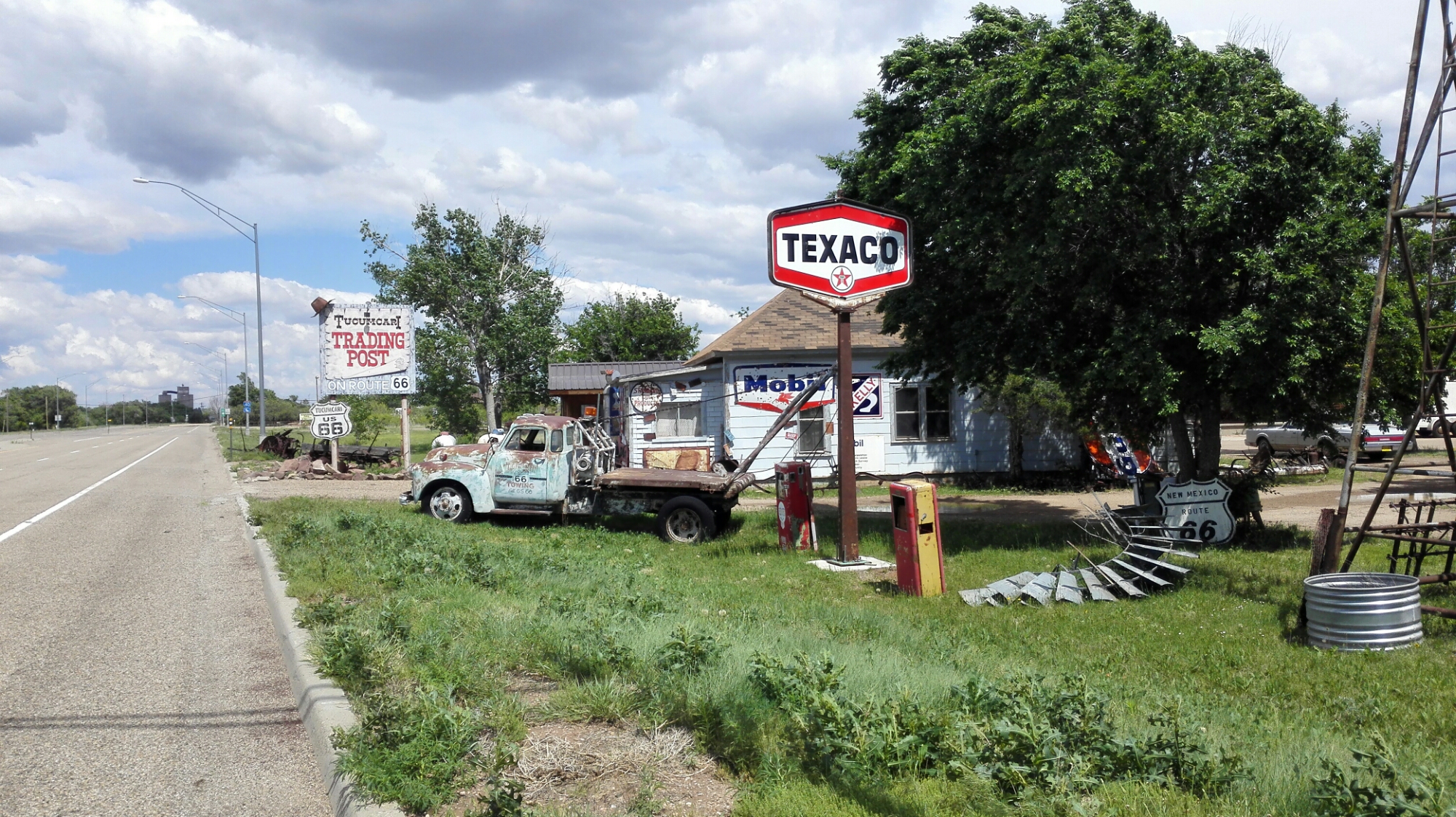 Si è passati per il Cadillac Ranch, Vega, Adrian con il suo midpoint ed infine le 18 miglia della strada sterrata tra Glenrio e San Jon.