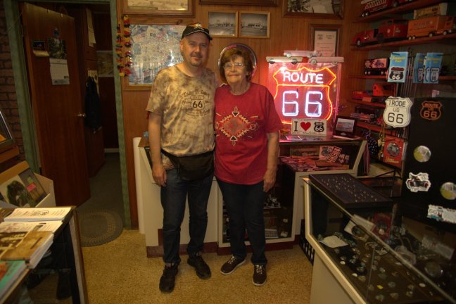 Ramona Lehman, la storica proprietaria del Munger Moss Motel. una persona dolcissima. Abbiamo trascorso la mattinata a parlare della Route, di lei e della sua famiglia e di altri rodies della Route 66 che conosciamo entrambi. E’ davvero una bellissima persona.