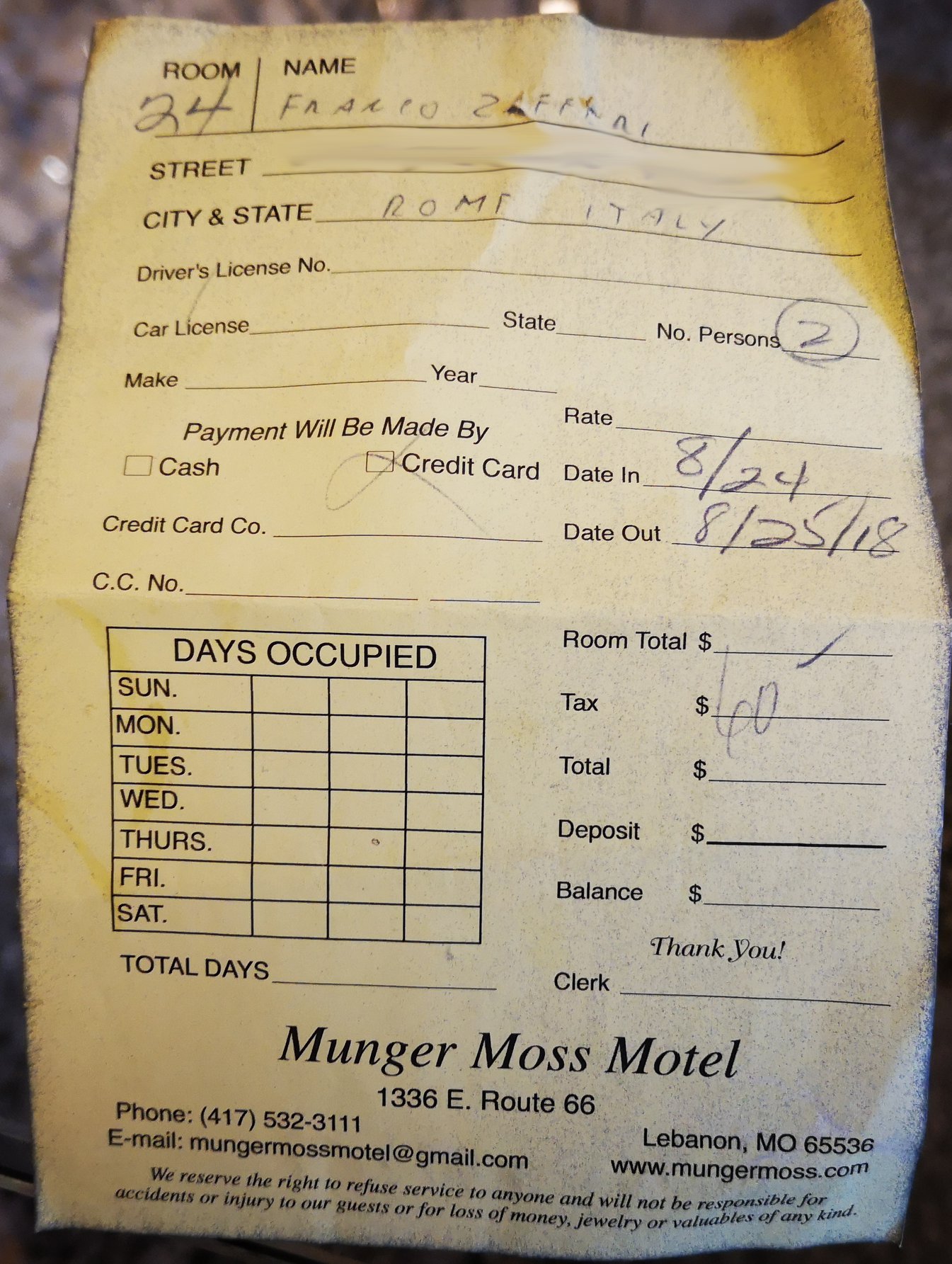 Il promemoria del mio soggiorno al Munger Moss Motel di Lebanon in Missouri