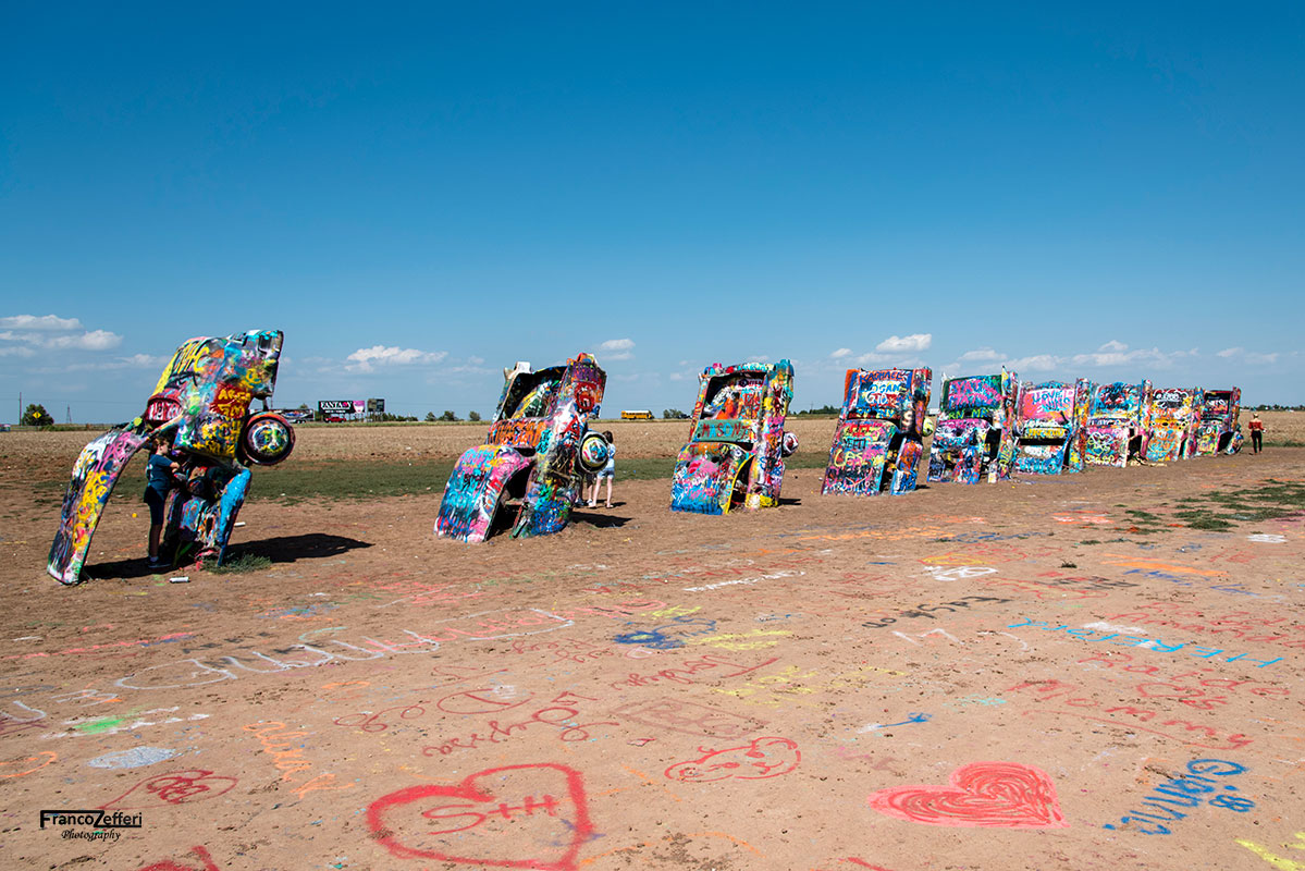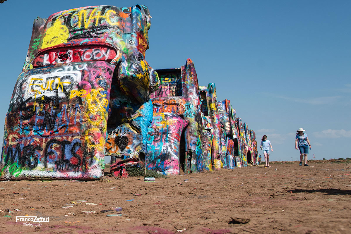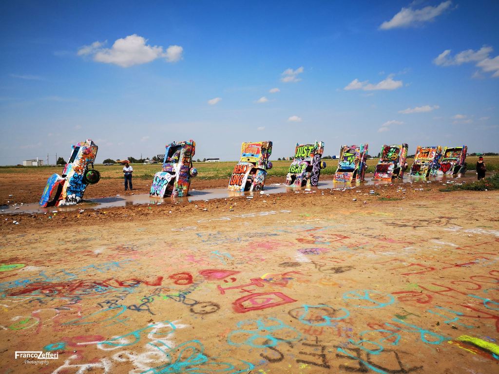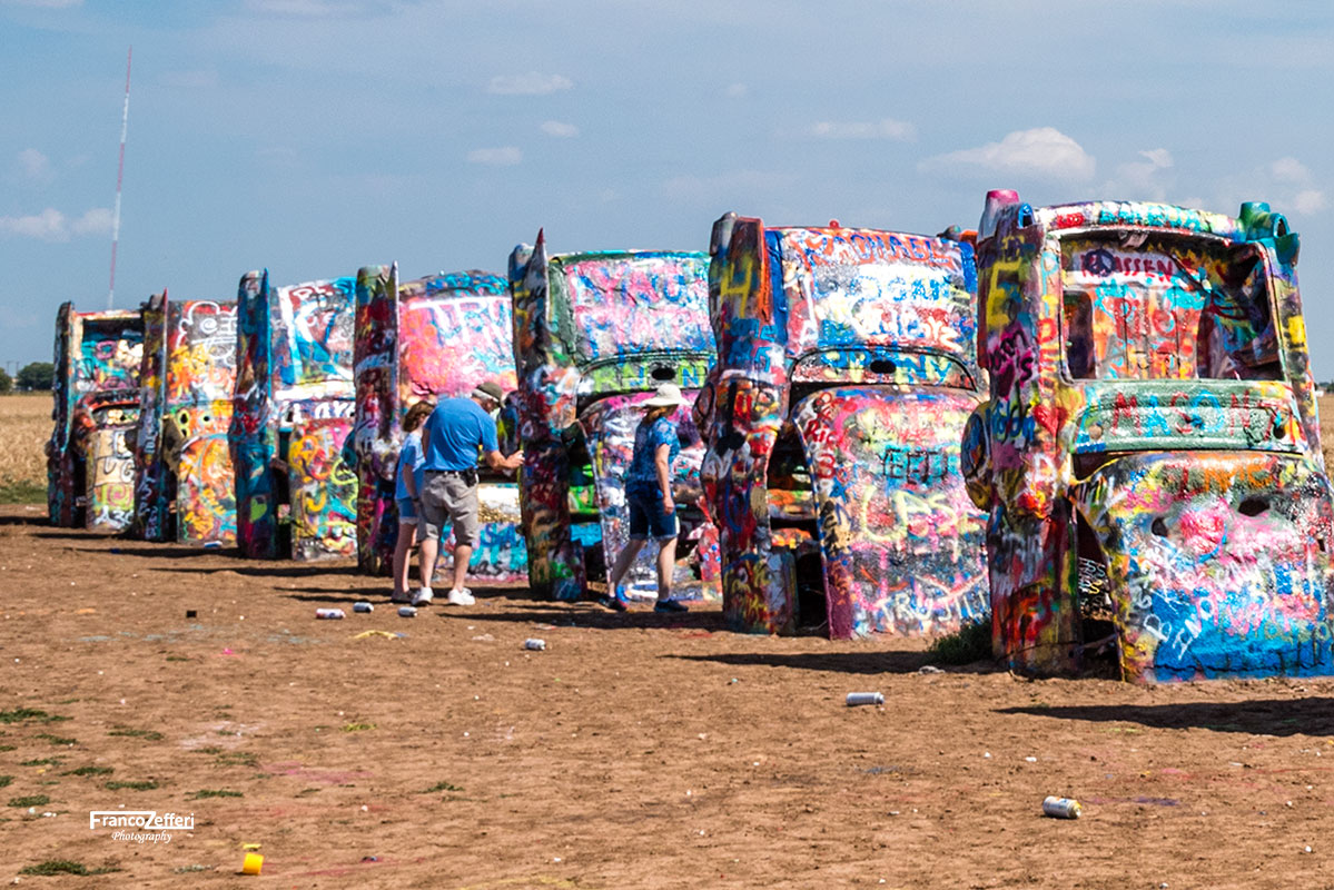 Le macchine, in origine, avevano ovviamente il loro colore che negli anni è stato rimpiazzato dai graffiti realizzati dai viaggiatori attraverso delle bombolette spray, pratica sempre incoraggiata dal milionario di Amarillo.