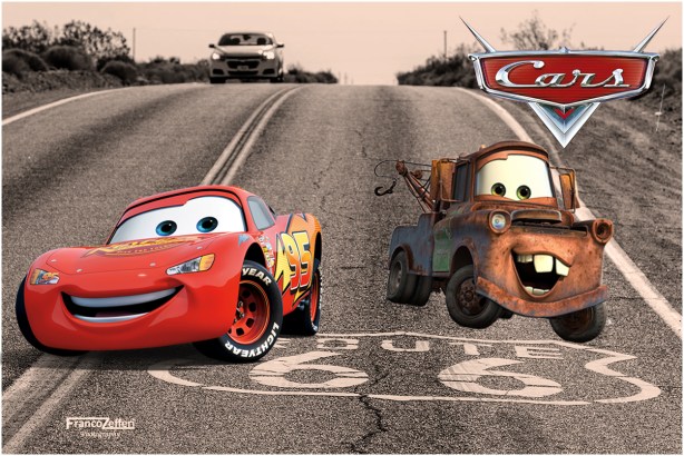 Cars è nato da un’idea di Lasseter, che per rivivere i viaggi della sua infanzia ripercorse la Mother Road con la sua famiglia.