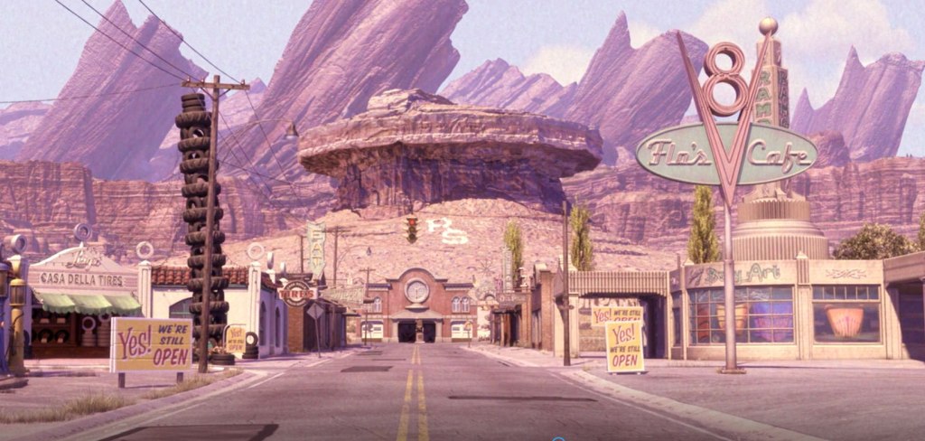Tutto in Cars è permeato dalla vecchia highway: i locali, il carattere delle piccole automobili, Radiator Spring stessa.